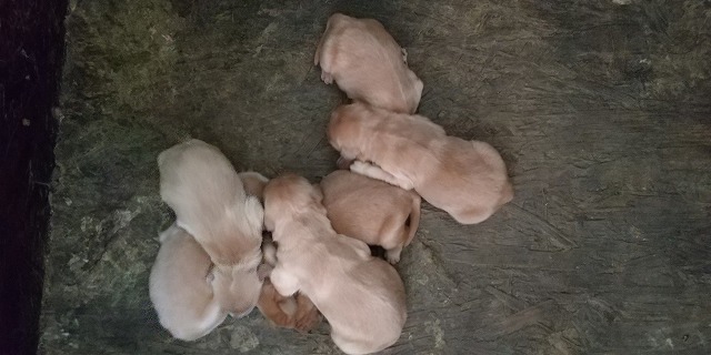 ★ゴールデンドゥードルF1b子犬出産情報★ ・誕生日:2018年1月8日(オス1・メス2)・12日(オス3・メス6) ・性別:オス4頭、メス8頭 ・毛色:クリーム&ゴールド ・価格:募集終了しました。 ・ワクチン代:5,000円 ・空輸料金:旭川空港からの直行便1万円、経由便1.5万円 ・産地:北海道 ・両親:1月8日生まれ、父親スタンダードプードル(ブラック)、母親ゴールデンドゥードル(クリーム) 1月12日生まれ、父親スタンダードプードル(クリーム)、母親ゴールデンドゥードル(クリーム) ・備考:ゴールデンドゥードルF1bとなります。母親はゴールデンレトリバーよりも抜け毛が少ないドゥードルですのでf1タイプより抜け毛が少なくウェーブも強くなる予想です。 ・順調に成長しています。ゴールデンドゥードルは抜け毛が少なく優しく賢い犬種です。年配の方や小さいお子さんとも相性がいいです。顔はゴールデン寄りで、被毛はウェーブがかかりプードルに近いミックス犬です。子犬を展示しているペットショップと違い母乳で免疫力をつけ他の子犬と交わっていませんので伝染病の心配の無い健康な小犬達です。お届けは生後55日前後を予定しています。 スタンダードタイプとなります。成犬時の予想体重は個体や性別より差は出ますが、大体20~25kg程度かと思います。 予約金をお支払いいただいた時点で正式予約とさせていただきます。詳細はお問合せください。 お問合せはこちら⇒info@dogdepo.net 090-2648-5923(ドッグデポ・有村) |