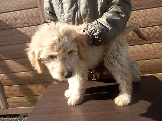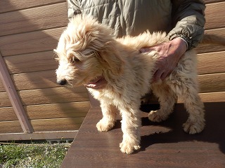 | ★ゴールデンドゥードル子犬最新情報★ ・誕生日:2012年5月20日 ・性別:オス1頭 ・毛色:クリーム ・価格:売約済み ・ワクチン代:5,000円(2種) ・空輸料金:15,000円 ・産地:沖縄県 ・保証:無償保証付き、詳細は⇒生体保証 ・両親:父親スタンドードプードル・クリーム、母親ゴールデンレトリバー ・備考:子犬達は大変可愛く順調に成長しています。ゴールデンドゥードルは抜け毛が殆んど無く優しく賢い犬種です。年配の方や小さいお子さんとも相性がいいです。被毛はプードルに近いミックス犬です。(下記掲載の生後2ヶ月の子犬を参考にして下さい。)子犬を展示しているペットショップと違い母乳で免疫力をつけ他の子犬と交わっていませんので伝染病の心配の無い健康な小犬達です。 生まれたばかりですので写真はありません。両親の写真と生後2ヶ月位の子犬の写真を参考にして下さい。 お問合せの際は氏名・住所・電話番号を明記して下さい。 お問合せはこちらから⇒info@dogdepo.net 090-2648-5923(ドッグデポ・有村) |